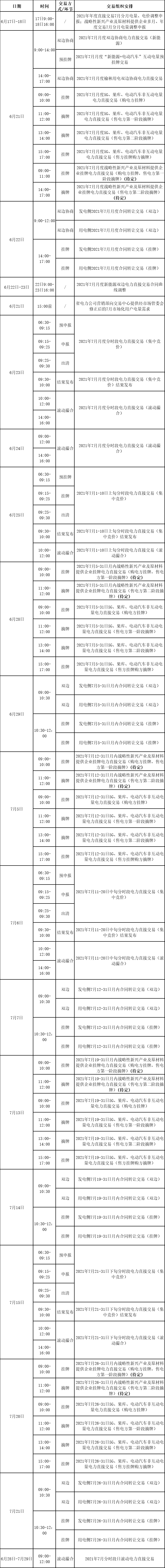 2021年7月月度及7月月內電力交易時間預安排