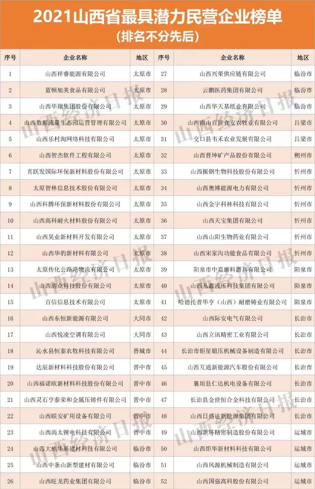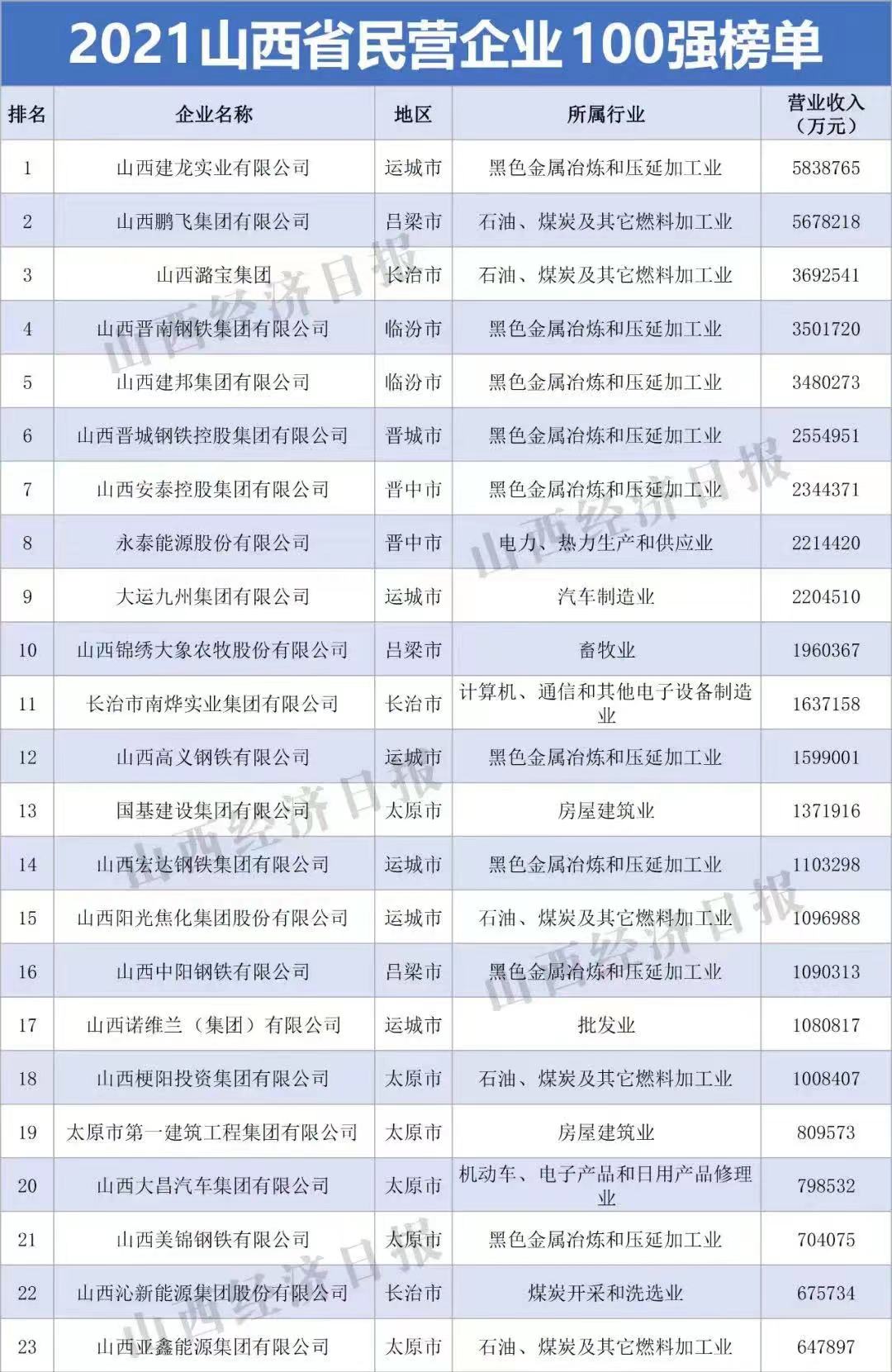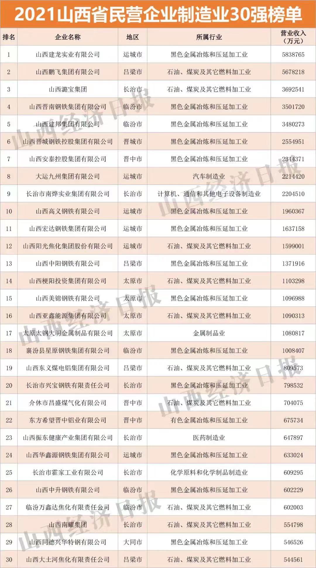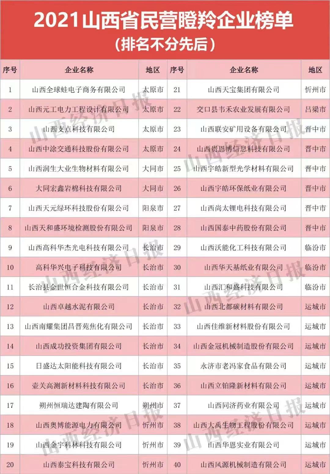 10月15日,由山西省工商聯(lián)主辦,省工信廳、省財(cái)政廳、省市場監(jiān)管局等支持的“2021山西省民營企業(yè)100強(qiáng)發(fā)布會(huì)”在太原舉行。會(huì)議發(fā)布“2021山西省民營企業(yè)100強(qiáng)”、“2021山西省民營企業(yè)制造業(yè)30強(qiáng)”、“2021山西省民營企業(yè)服務(wù)業(yè)20強(qiáng)”、“2021山西省最具潛力民營企業(yè)”系列榜單及《2021山西民營企業(yè)100強(qiáng)調(diào)研分析報(bào)告》。首次發(fā)布“2021山西省民營準(zhǔn)獨(dú)角獸企業(yè)”、“2021山西省民營瞪羚企業(yè)”榜單。