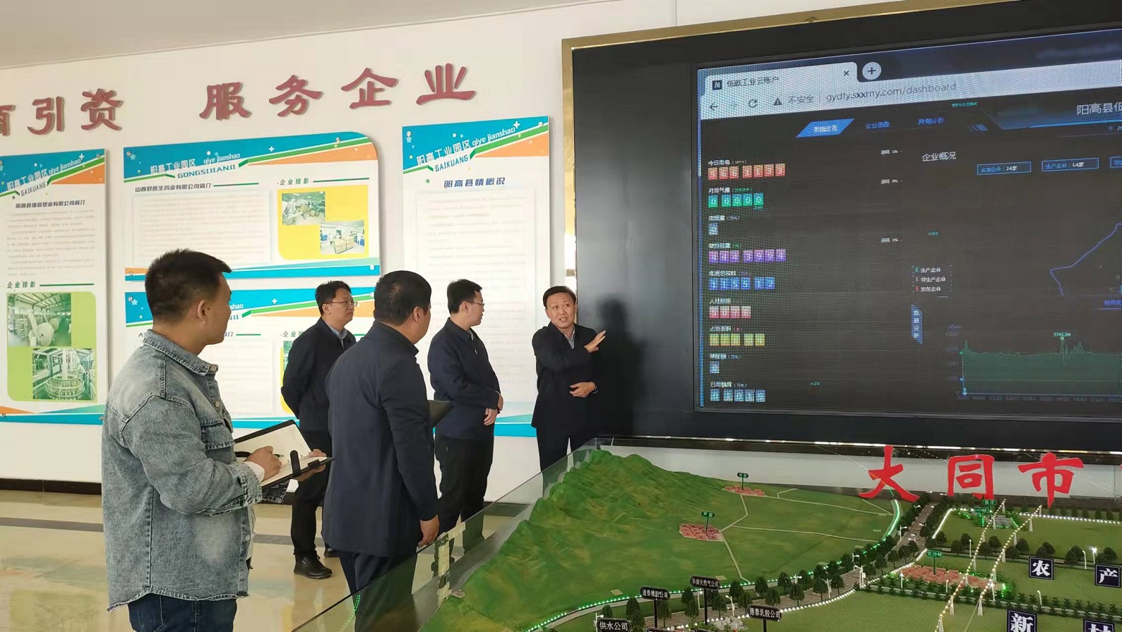 11月2日,陽高縣委書記丁國華、縣長謝云、副縣長任雪峰一行蒞臨陽高縣龍泉工業(yè)園區(qū)參觀調(diào)研,并對祥睿主導(dǎo)建設(shè)的陽高縣低碳工業(yè)云賬戶平臺情況進行了考察。