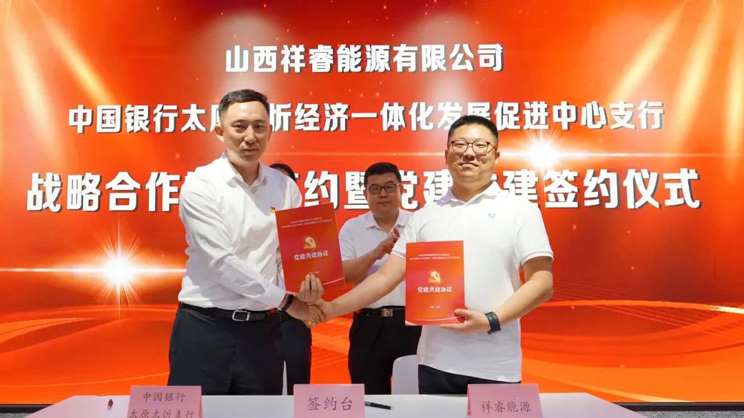 5月31日上午,中國銀行山西省分行太忻支行與祥睿能源舉行戰(zhàn)略合作協(xié)議簽約暨黨建共建簽約儀式。山西省委統(tǒng)戰(zhàn)部副部長郭延斌,中國銀行山西省分行黨委委員、副行長王智勇,太忻支行支部書記、行長安興華等蒞臨現(xiàn)場(chǎng),祥睿能源董事長王正通,總裁楊新宇,山西復(fù)興能源研究院名譽(yù)院長白祚祥,黨支部專職副書記武忠民等出席簽約儀式。