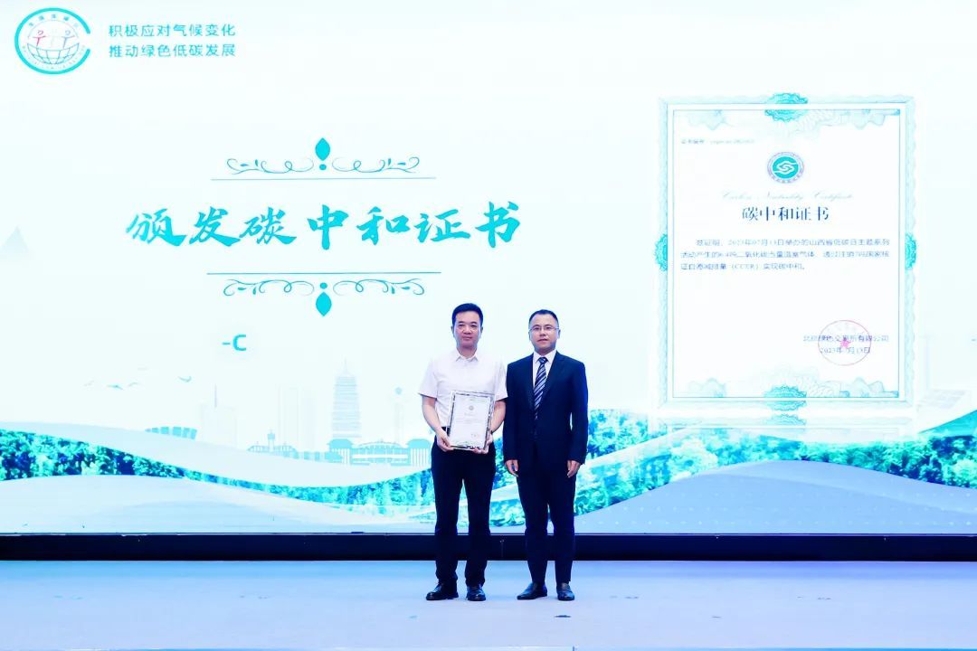 氣候投融資試點合作簽約儀式北京綠色交易所為本次活動頒發(fā)碳中和證書