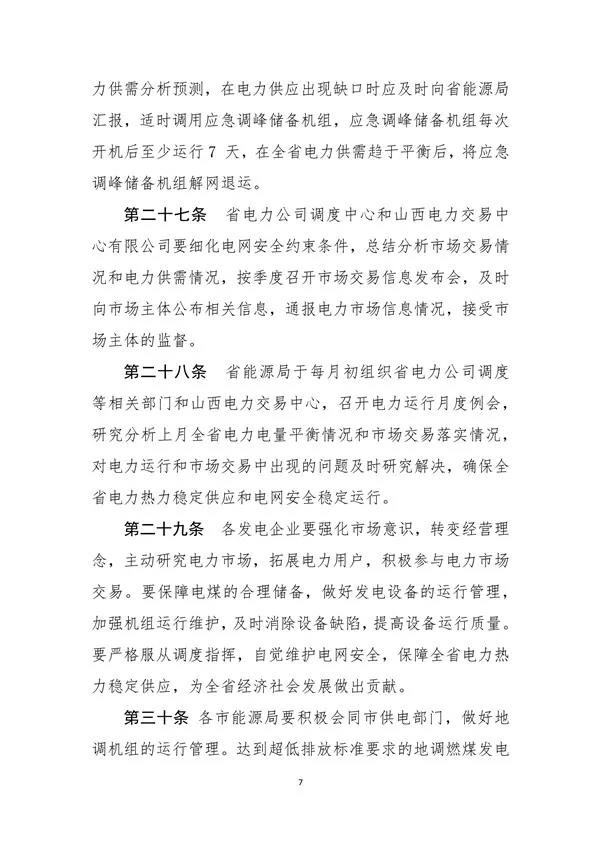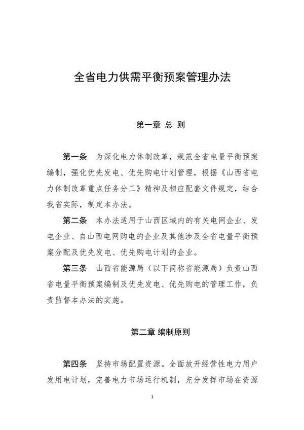 山西省能源局文件 晉能源電力發(fā)[2020]493號 關(guān)于印發(fā)《全省電力供需平衡預(yù)案管理辦法》的通知 省電力公司、山西電力交易中心有限公司、中央各發(fā)電集團(tuán)公司山西分公司、蘇晉能源控股有限公司、北京能源集團(tuán)有限責(zé)任公司、晉能集團(tuán)有限公司、格盟國際能源有限公司、同煤集團(tuán)漳澤電力股份有限公司、西山煤電(集團(tuán))公司發(fā)電分公司、省調(diào)各發(fā)電企業(yè)、各相關(guān)市場主體: 為深化電力體制改革,規(guī)范全省電量平衡預(yù)案編制,強(qiáng)化優(yōu)先發(fā)電、優(yōu)先購電計劃管理,現(xiàn)將《全省電力供需平衡預(yù)案管理辦法》印發(fā)給你們,請認(rèn)真貫徹執(zhí)行。 附件:全省電力供需平衡預(yù)案管理辦法.pdf 山西省能源局 2020年9月29日 |