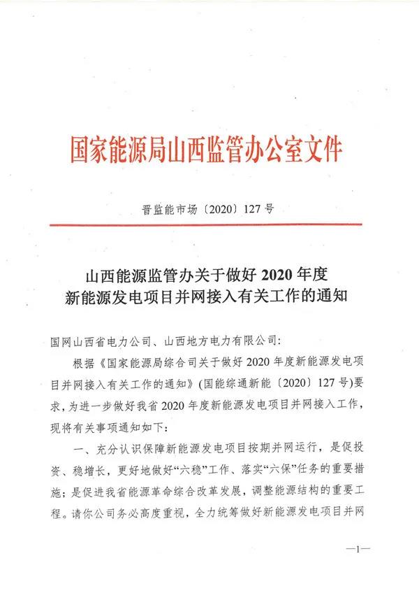| “能并盡并”!山西大力支持2020年度新能源發(fā)電項目并網接入 |